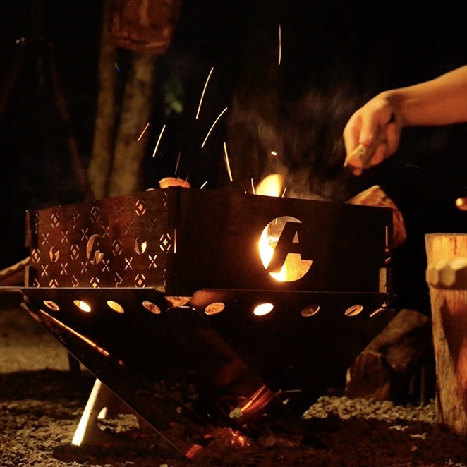 もともと焚き火周りのカスタムギアメーカーとして人気のついた「アシモクラフツ」だが、オリジナルアイテムのクオリティーの高さにも注目したい。代表作の焚火台は、軽量で持ち運びに便利な組み立て式焚火台のパイオニア的存在とも言える銘品だ。