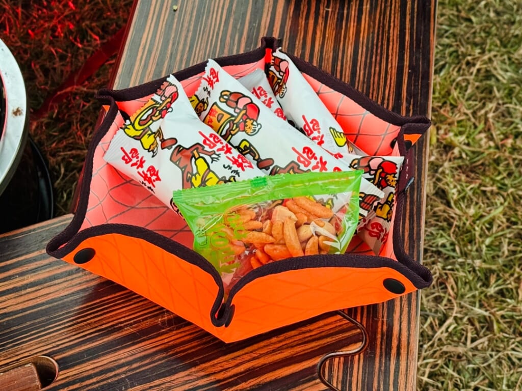 テーブルのゴチャ付きや小物の紛失を軽減してくれますが、持ち物としての優先順位は低くなりがちなトレイ。こちらは、持っていくかどうか迷わないサイズ感と軽さが魅力的。こういうちょっとしたアイテムが、キャンプの快適さを底上げしてくれると感じました。