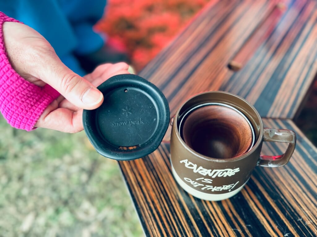 「これは、キャンプ仲間に教えてもらったネタで、導入した当時やってみたら驚くほどぴったりでびっくりしました。飲み物もこぼれにくいし、冬でもより冷めにくくなってグッド。夏は虫が入らないのも助かります。」