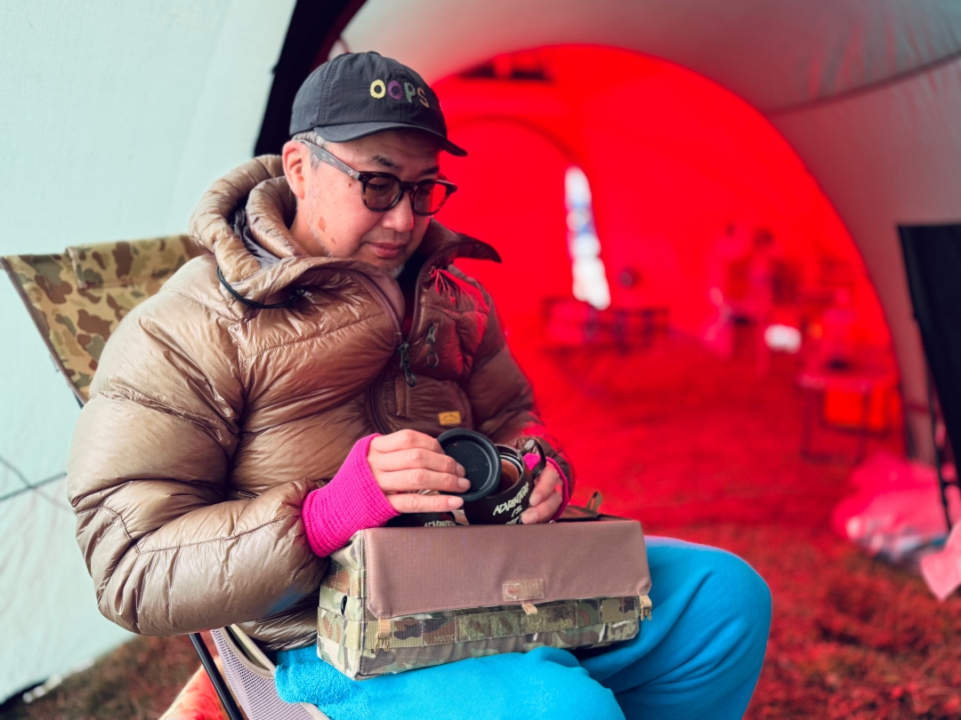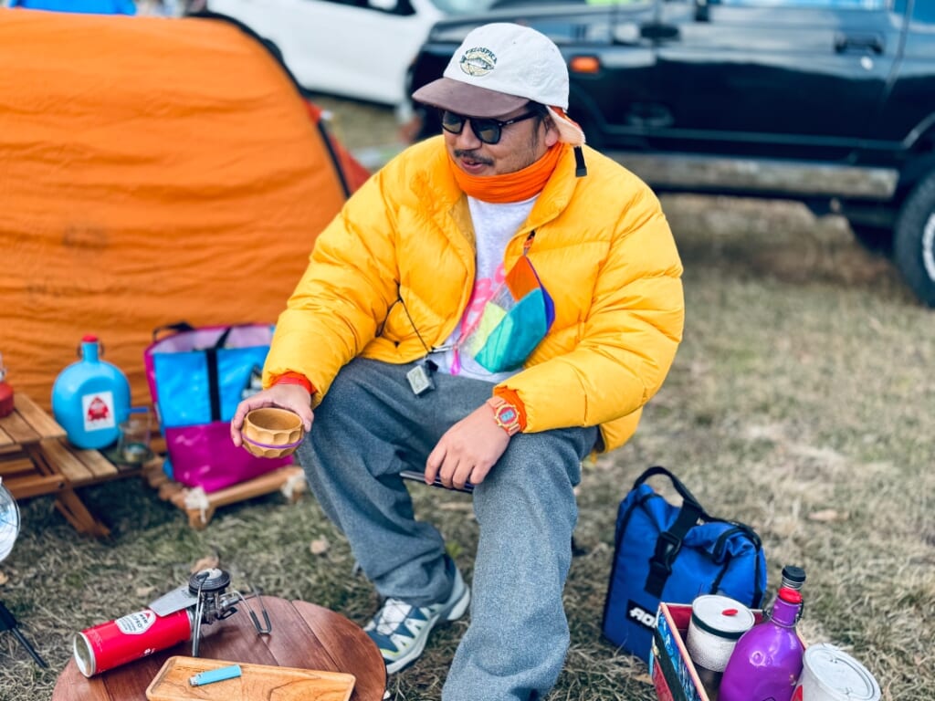 いつもの仲間たちとグループキャンプを楽しんでいたハヤブサさんが、テーブルに置いていたのが、このトレイ。こちらは、高機能なアウトドアファブリックを使用した、バックパックやポーチ類が人気のブランド、THE LIGHT SEWING MACHINENの「NP2」。シート状からトレイへと変形するシンプルな構造ながら、実用面でもサイトのオシャレにも便利なアイテムでした。