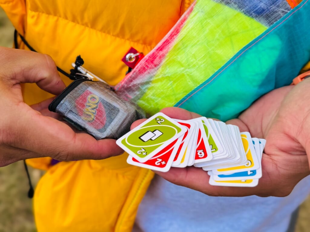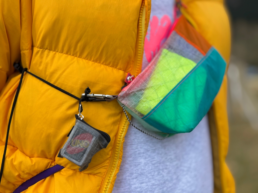「UNOを携帯できるようになったので、どこでも友人たちと暇を潰せます。このブランドを手がける友人にこの使い道を報告したら、公式な使い道として採用してくれました(笑)。小さくともダイニーマ製なので、軽くてタフで濡れにも強いです。」