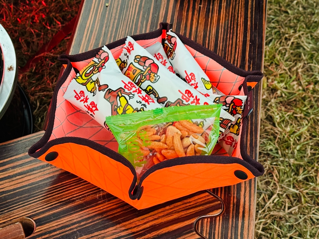 テーブルのゴチャ付きや小物の紛失を軽減してくれますが、持ち物としての優先順位は低くなりがちなトレイ。こちらは、持っていくかどうか迷わないサイズ感と軽さが魅力的。こういうちょっとしたアイテムが、キャンプの快適さを底上げしてくれると感じました。