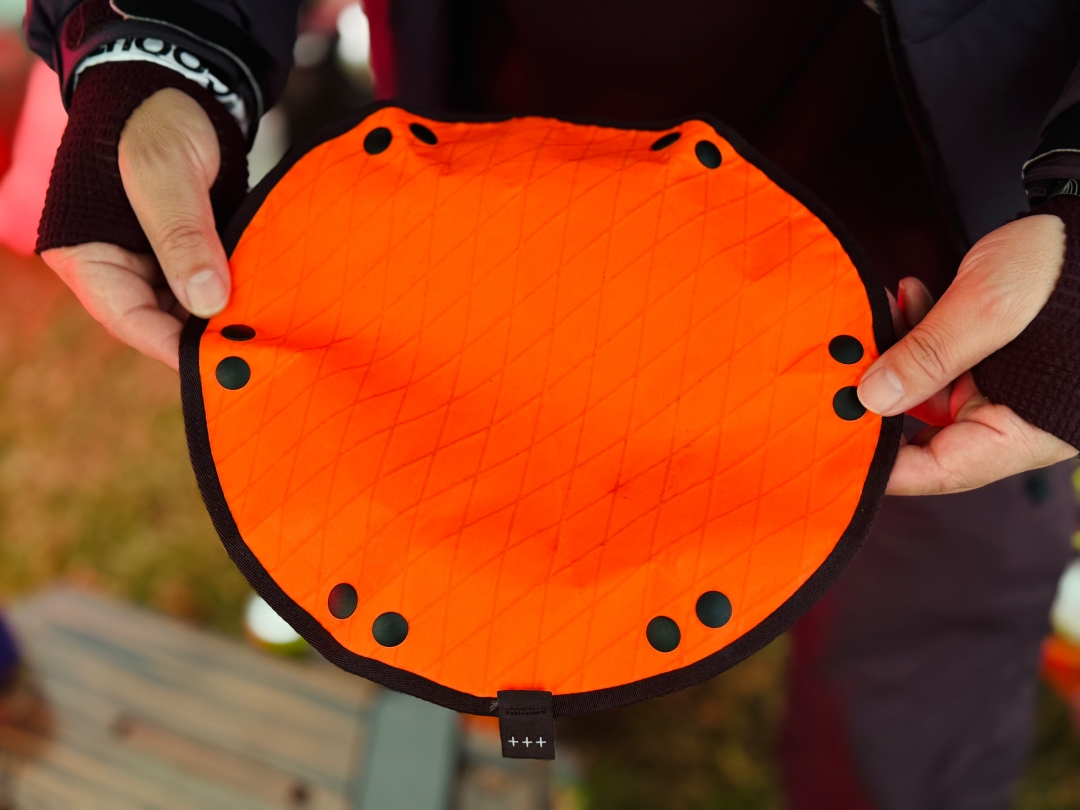 いつもの仲間たちとグループキャンプを楽しんでいたハヤブサさんが、テーブルに置いていたのが、このトレイ。こちらは、高機能なアウトドアファブリックを使用した、バックパックやポーチ類が人気のブランド、THE LIGHT SEWING MACHINENの「NP2」。シート状からトレイへと変形するシンプルな構造ながら、実用面でもサイトのオシャレにも便利なアイテムでした。