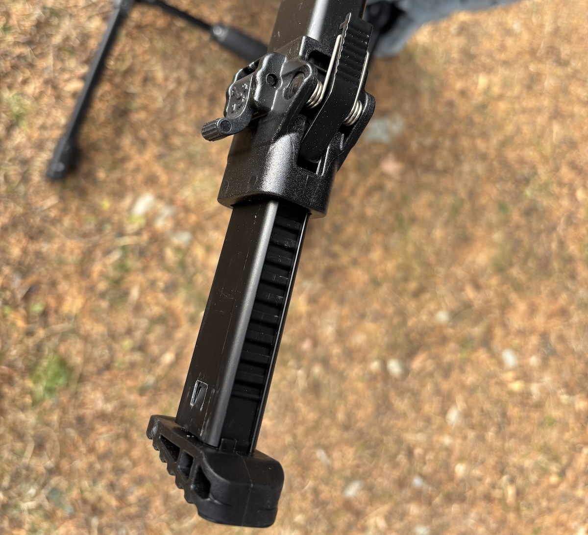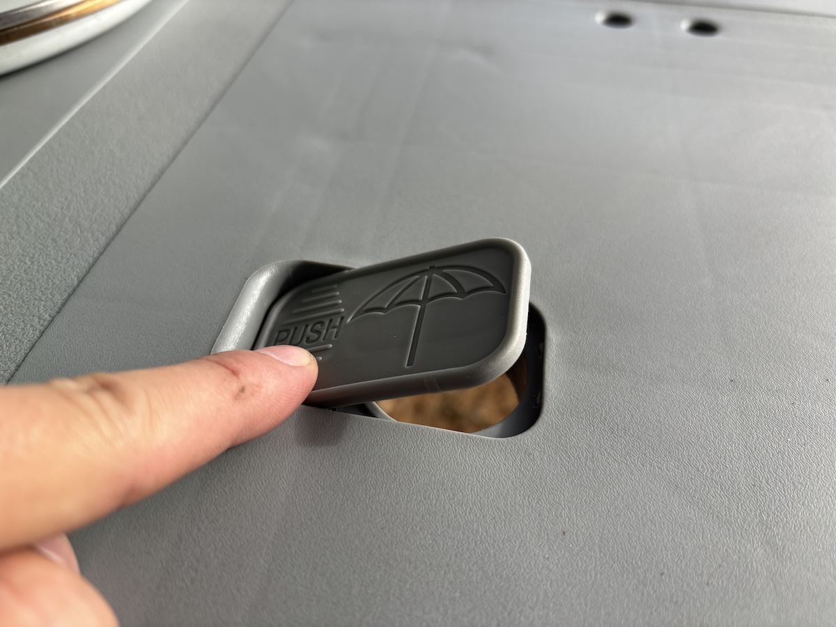 取手は天板に設けられたボタンを押しながら引っ張ることで引き出すことが可能。