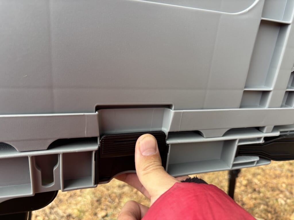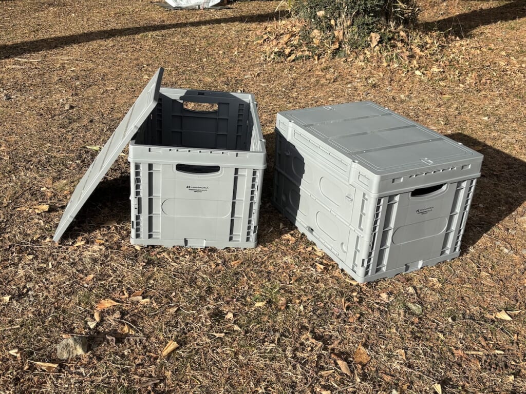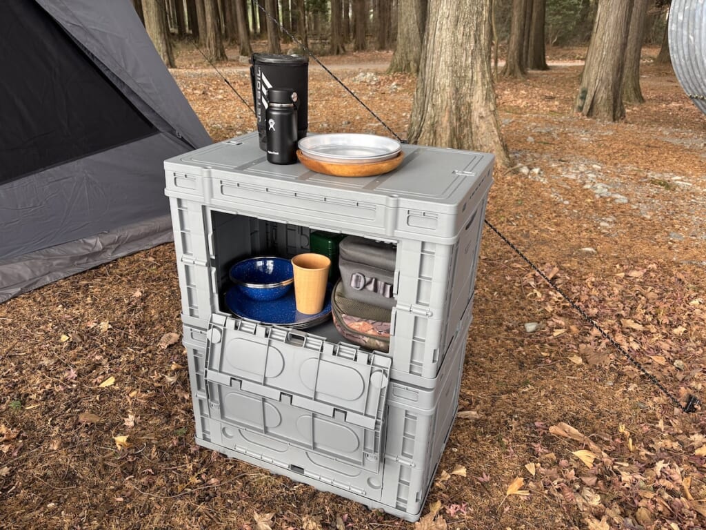 コンテナのサイドは開閉可能で、キャンプサイト内に積んでおけば棚としても使用可能。サイドテーブルとしても活躍してくれます。