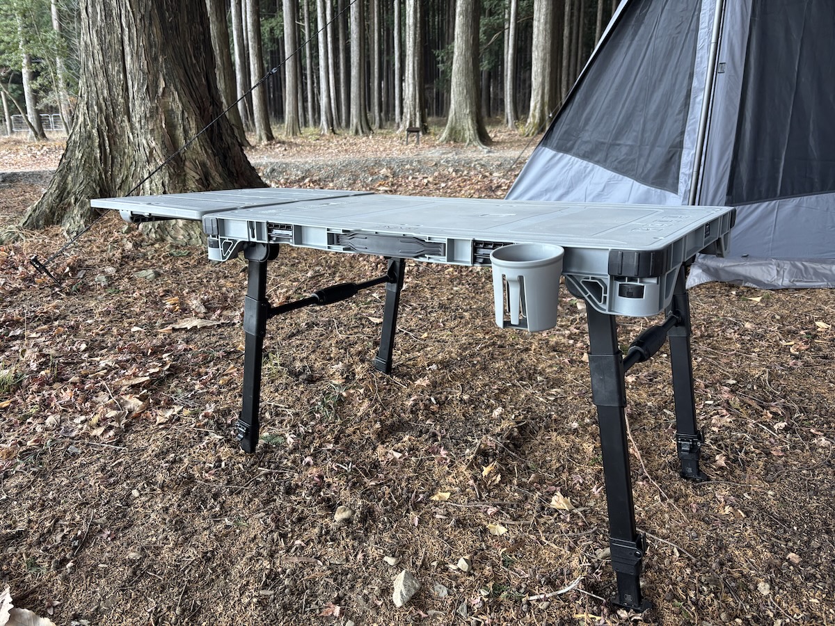 また、フラットカートダイニングにはテーブルサイドに取り付け可能なカップホルダーが2個付属。路面が不安定でカップを倒しがちなキャンプでは地味に嬉しい。