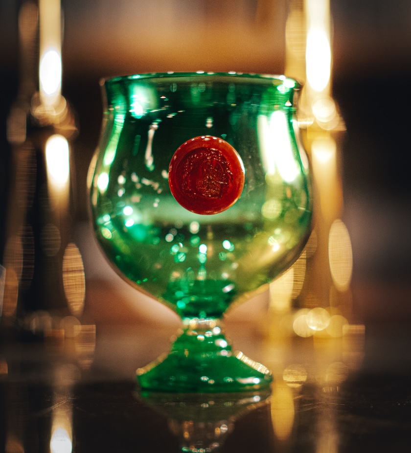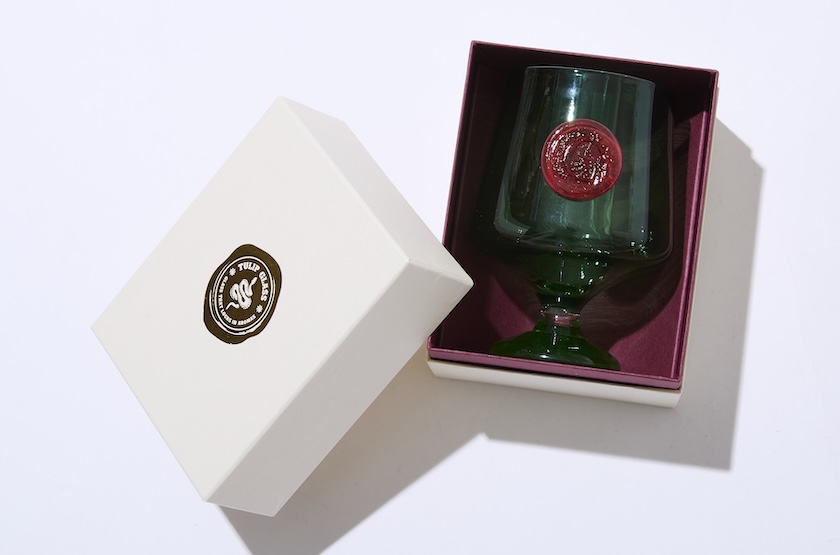 LEDランタンとグラスをベースとした3モデルはともに、淡くて深いグリーンの配色にカラー別注。貴族の封蝋をイメージしたGマークも相まって、まるでヴィンテージを思わせる重厚な佇まいにデザインされています。