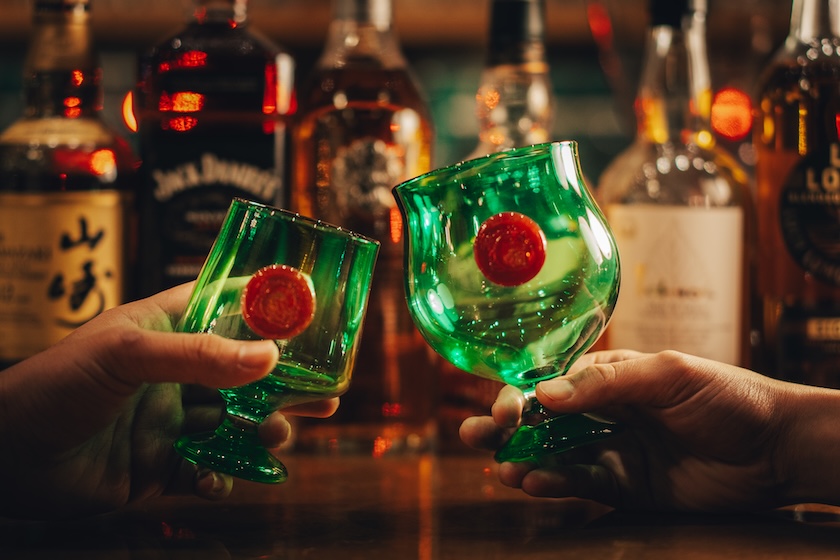 吹きガラスの技法によって一つひとつ丁寧に作られたグラスは、同ブランドが拠点とする出雲市で手掛ける映画館兼ジャズ喫茶「OLD THEATER」にて限定で発売されたグラスのGO OUT別注カラーです。