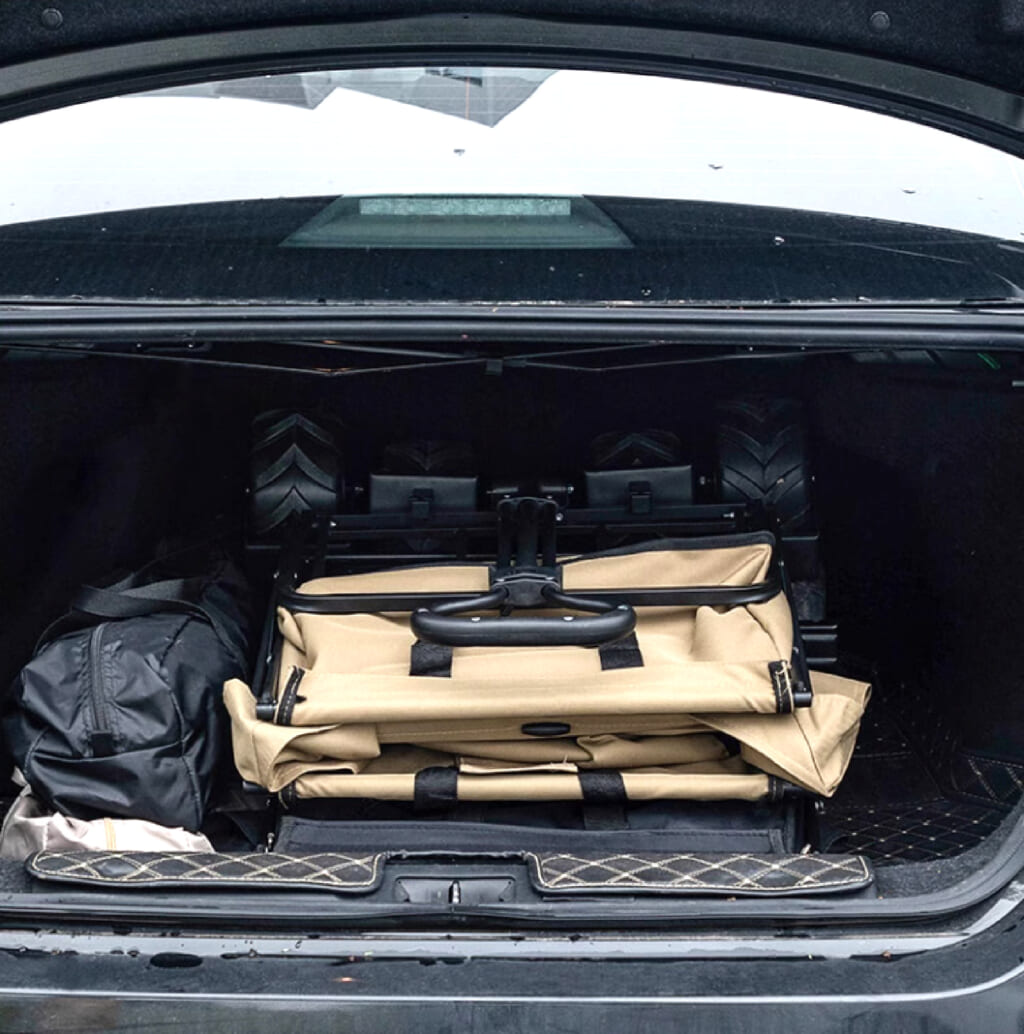 キャリーワゴンは一台あると超便利。キャンプなら駐車場からギアを運ぶのに役立つし、ちょっとした外遊びでも荷物を持ち運ぶのにも重宝する。ブラック・アンド・デッカー製はフレームに耐久性とサビに強いステンレス材を採用。
