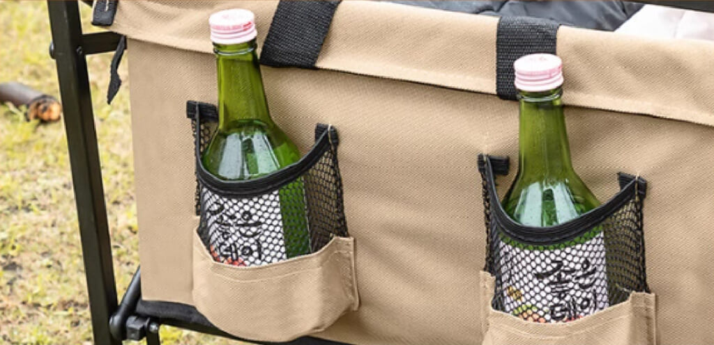 前側に2つのメッシュポケットを備えており、ドリンクなどデリケートなものを入れるのにおすすめだ。