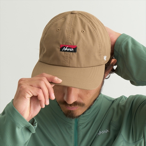 髪の毛を火の粉から守り、焚き火の臭いが付着するのも防いでくれるキャップ。美しいフォルムの6パネルに、ナンガ独自の難燃生地が落とし込まれています。