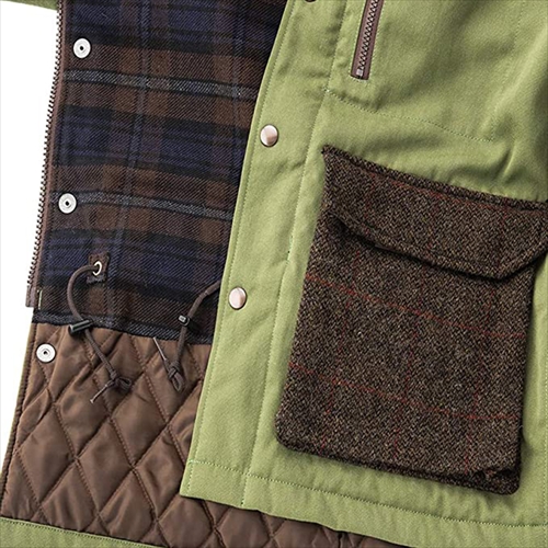 消防被服に使われるアラミド繊維を表地に使い、さらに裏地との間に防風幕をプラス。保温性に優れた一枚に仕上げ、クラシックなマウンパを使い良いフィールド仕様にアップデート。