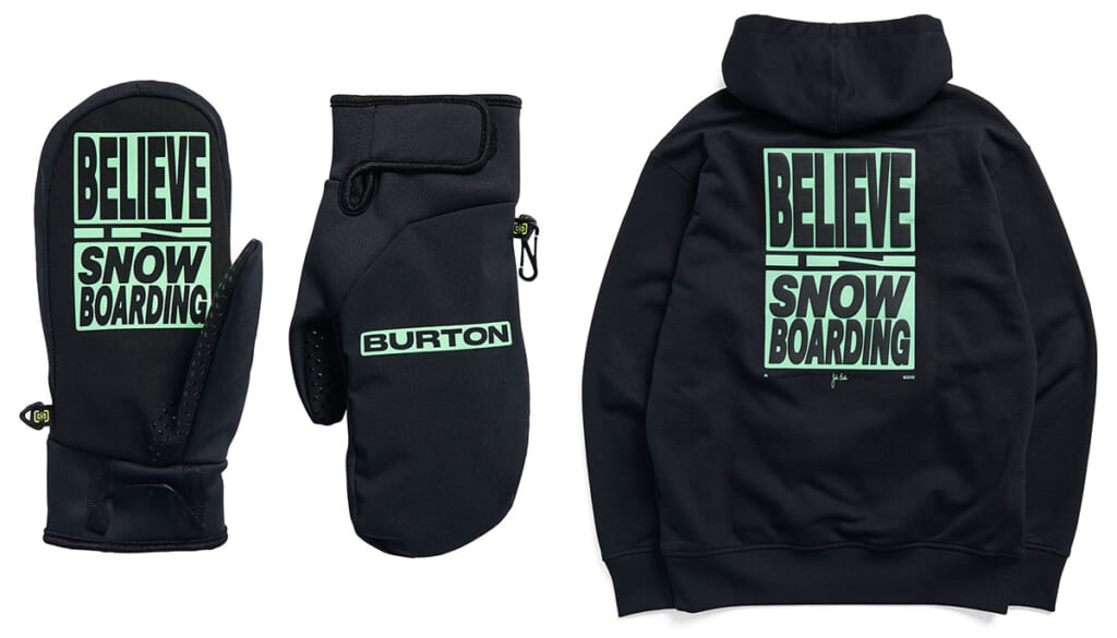 “From Burton to the World”コレクションでは、過去の「Burton」カタログに掲載されてきたグラフィック上の名言をフィーチャー。どれも大切な意味のある名言で、スノーボードに対するジェイクの想いが込められている。