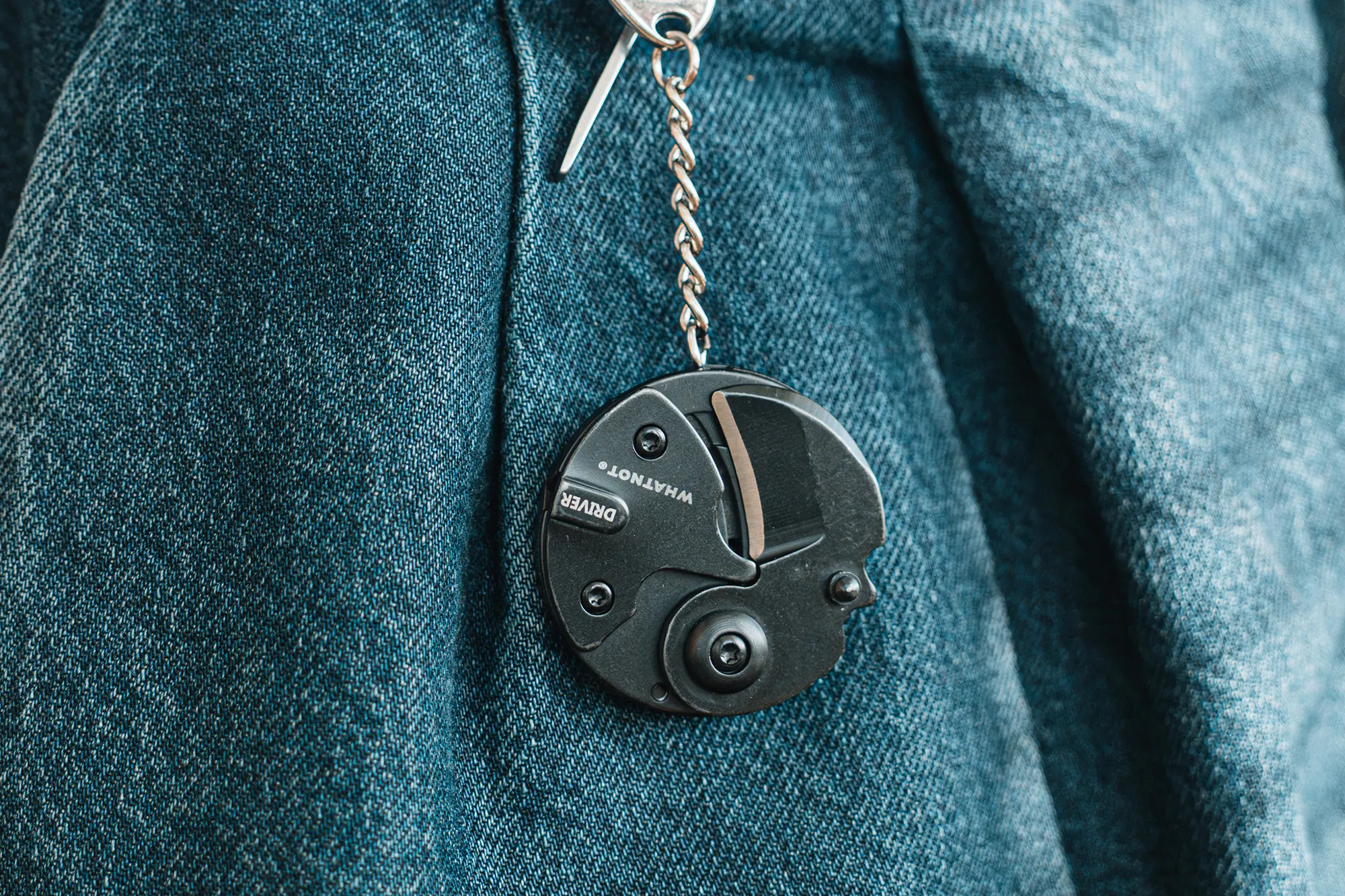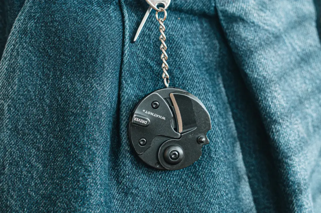 まず一つめは、直径43㎜のラウンド型ツールで、キーホルダー付きだからバッグやベルトループに掛けることも可能。素材は420グレード ステンレス鋼を用い、サンドブラスト加工でフィニッシュ! EDC(Everyday Carry)の名の通り、常に持ち歩きたくなるサイズ感が魅力だ。