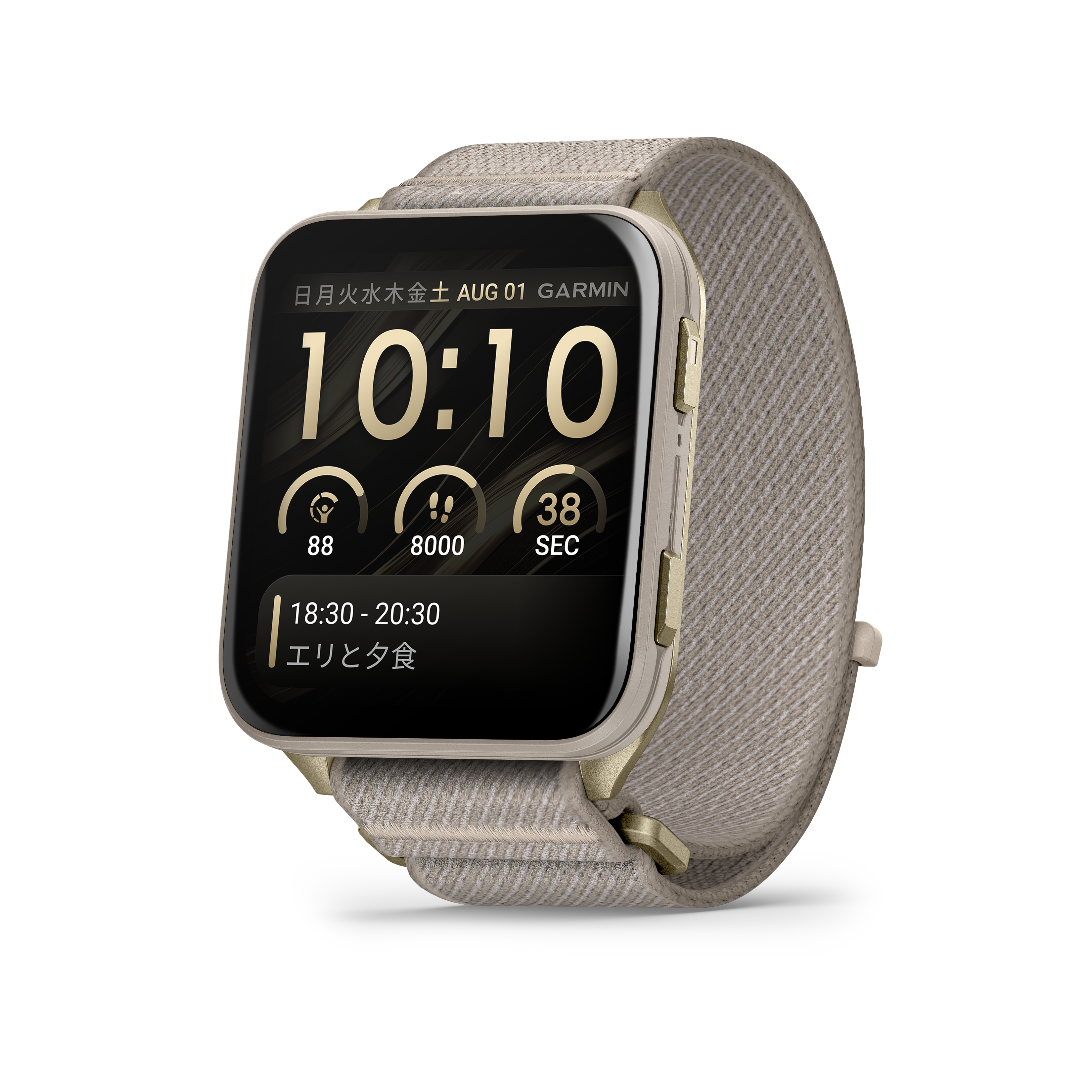 スピーカー&マイクによる音声操作やミュージックの再生はもちろん、スクリーンタッチによる簡単なメッセージ入力や電卓機能を有し、Suica決済及び独自のGarmin PAYに対応しているから、このデザイン性も含めてデイリーでも使いやすい。カラバリはフレンチグレイ、ブラック、モスの3色を用意する。