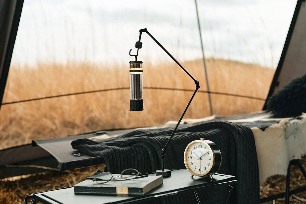 サイト全体をシックにまとめたいキャンパーに嬉しい「ウィングフォート 5th Anniversary ブラック」との統一感を高めるブラック仕様のギアもラインナップ。拡張性の高さが魅力の「マルチフレームテーブルシリーズ」と、自由自在な動作を可能にした卓上ランタンスタンド「グラフアーム」にブラックカラーが登場する。