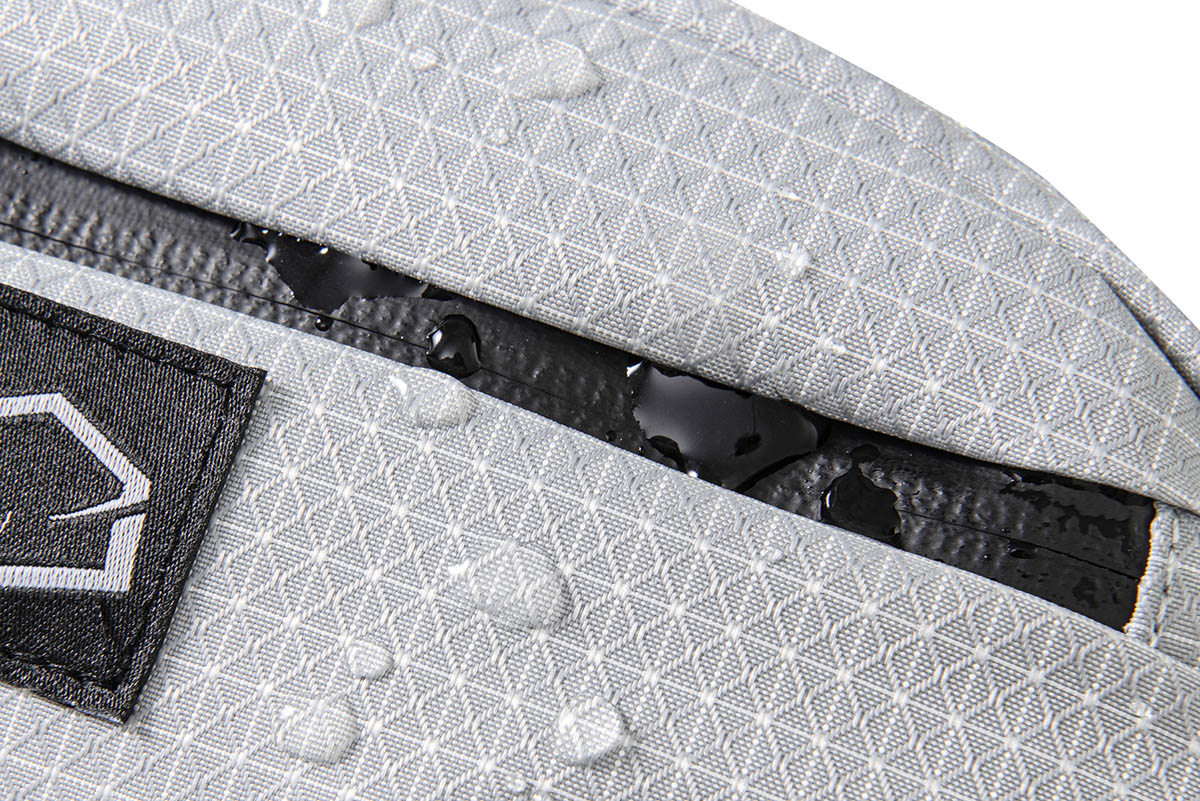 本体、ポケットにも止水ダブルジッパーを採用、両サイドにハンドルループがついている。このファニーパックは、ゼログラム以外のバックパックにも取り付け可能だ。