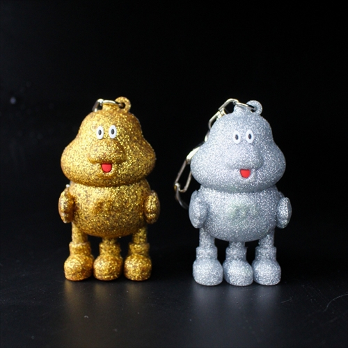 3本足で自立するオリジナルキャラクター・ダックローがキーホルダーに。光を当てるとラメがキラッと光る煌びやかなデザインで、ゴールドとシルバーの2色を展開。
