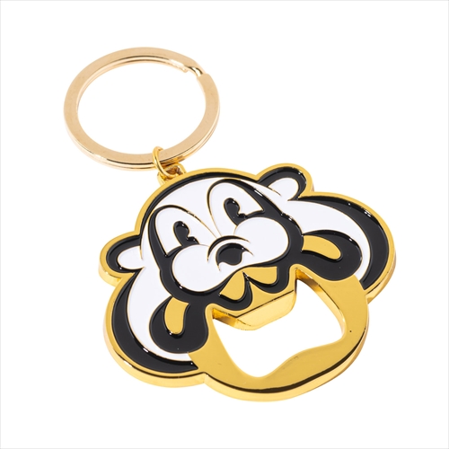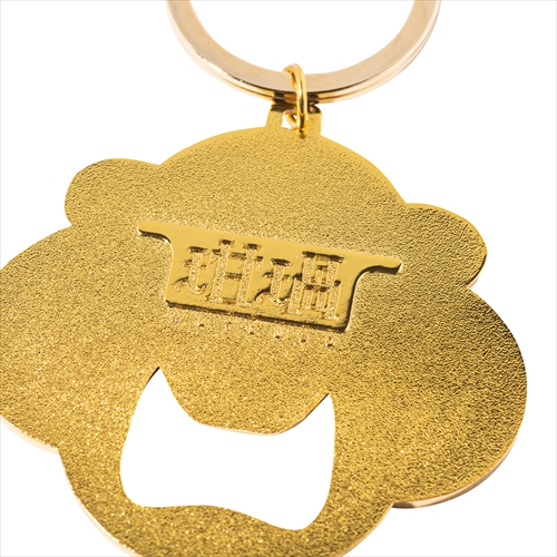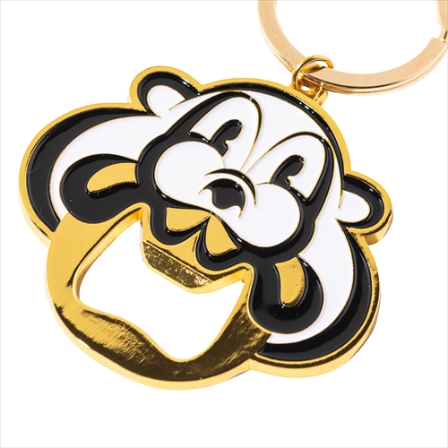 ソフビでも人気を集める摩訶不思議なキャラクターをキーホルダーに。ゴールドカラーを基調とした存在感のあるデザインで、口の部分はボトルオープナーとして機能。