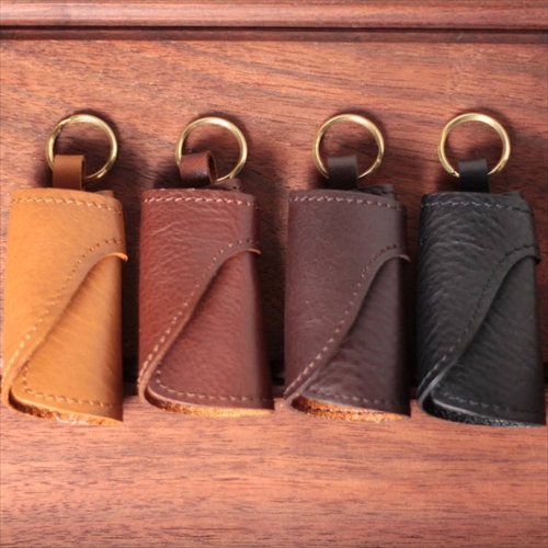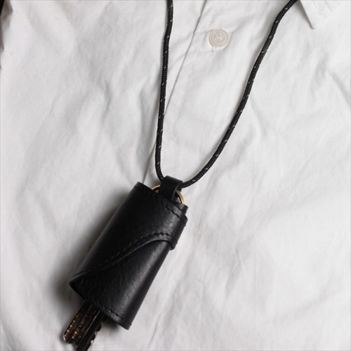 使うほどにアメ色へと経年変化するハイクオリティな牛革を使い、カギを優しく包み込むクロシェット風デザインに。手持ちのコードに通せばネックストラップとして活躍。