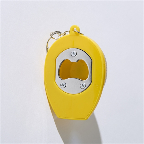ヘルメットモチーフのユニークなデザインで、トップのスイッチを入れるとヘッドライトのようにLEDライトが点灯。暗所での作業に最適で、下部には栓抜きをレイアウト。