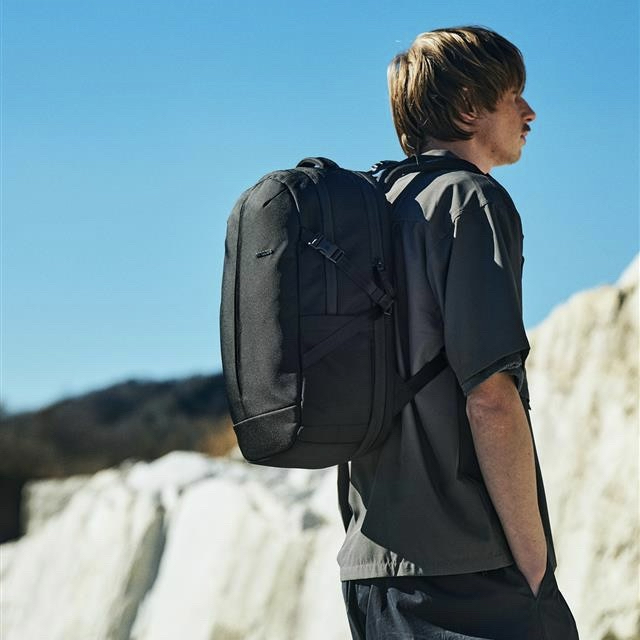 インビスタ社の CORDURA®1680 デニールのバリスティックナイロンを採用した本アイテムは、通常容量21Lをベースに、マチ部分に内蔵された360度ファスナーを開くことで約27L(約30%増)まで拡張できるバックパックです。アウトドアだけでなく日常使いはもちろん、PCを持ち運ぶビジネス出張や旅行など荷物が多くなるシーンにも対応します。