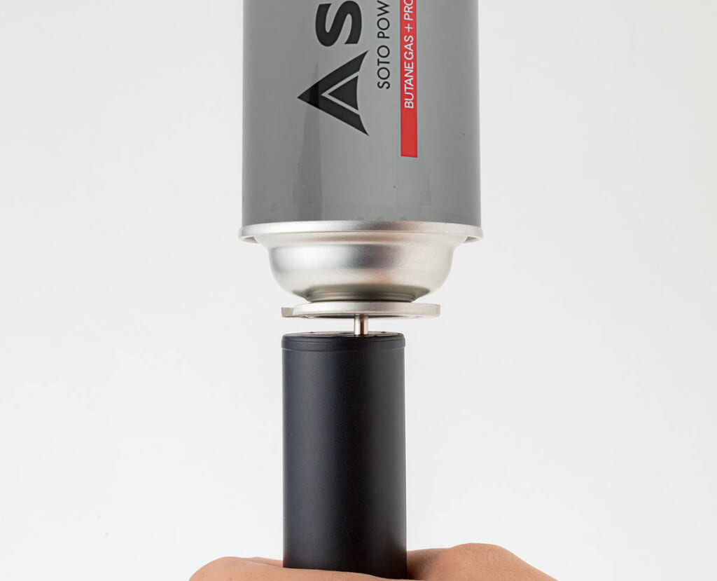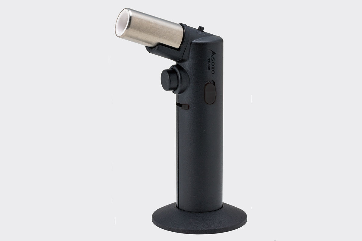SOTOの“ST-490 フィールドフレーム”は、カセットボンベからガスを充てんすることで、繰り返し使えるガストーチ。