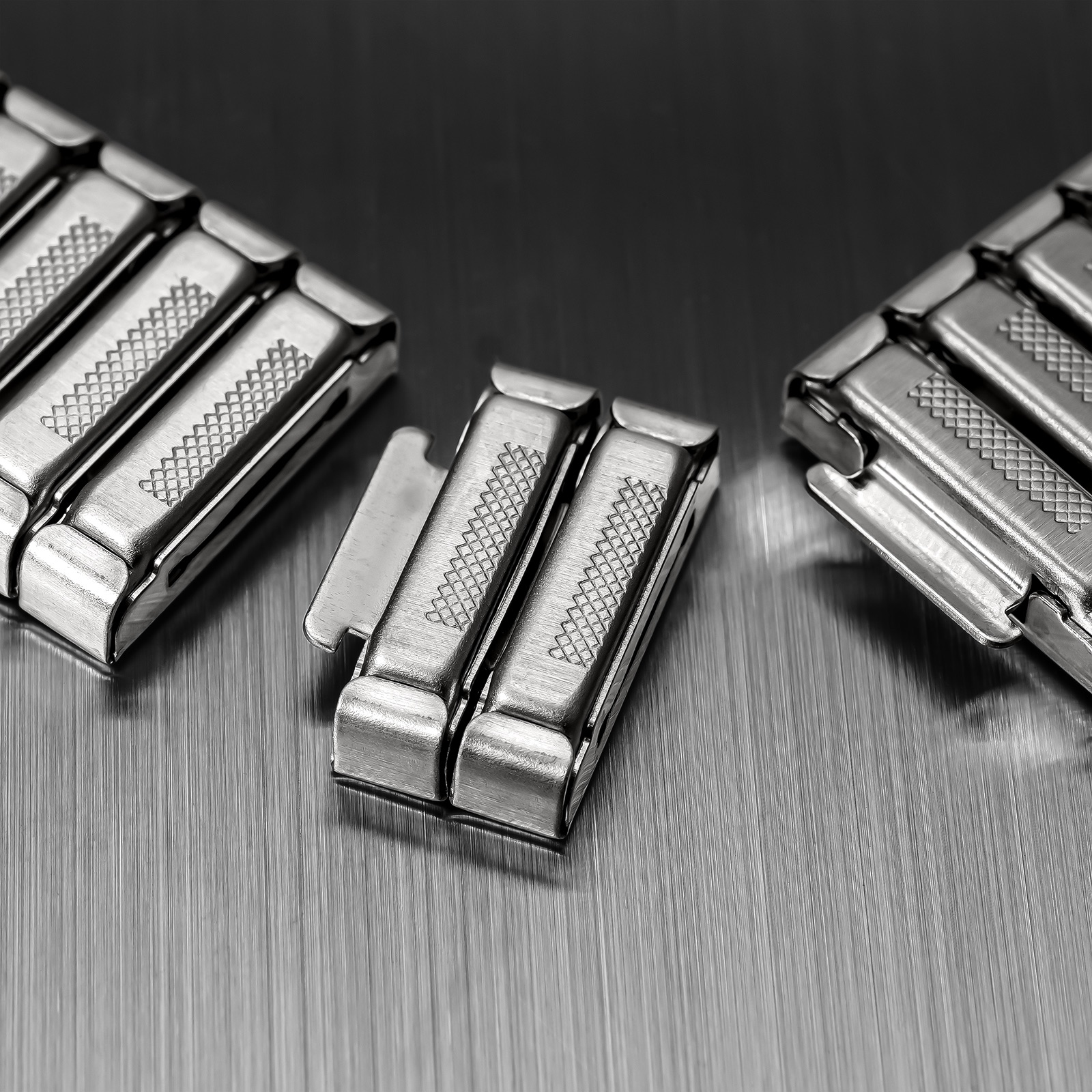 ブレスレットには、着脱しやすい蛇腹式のエクスパンションバンドを採用。往年のヴィンテージ感を残しながら、現代的な使いやすさをプラスしています。