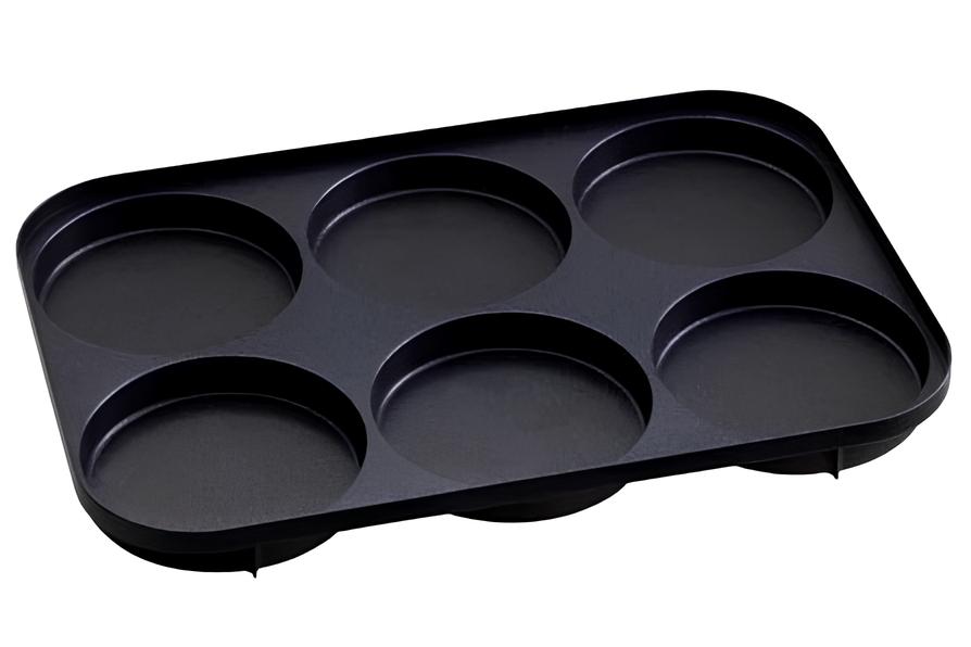 オプションのマルチプレートを使えば、料理の幅もぐっと広がります。6つの丸型スペースで、パンケーキや目玉焼きを同時に調理できるため、忙しい朝でも手早く華やかな一皿が完成。さらに、具材を6つまでアレンジできるからキッシュやチヂミをこんがり焼いて、みんなでワイワイと食事を楽しめます。