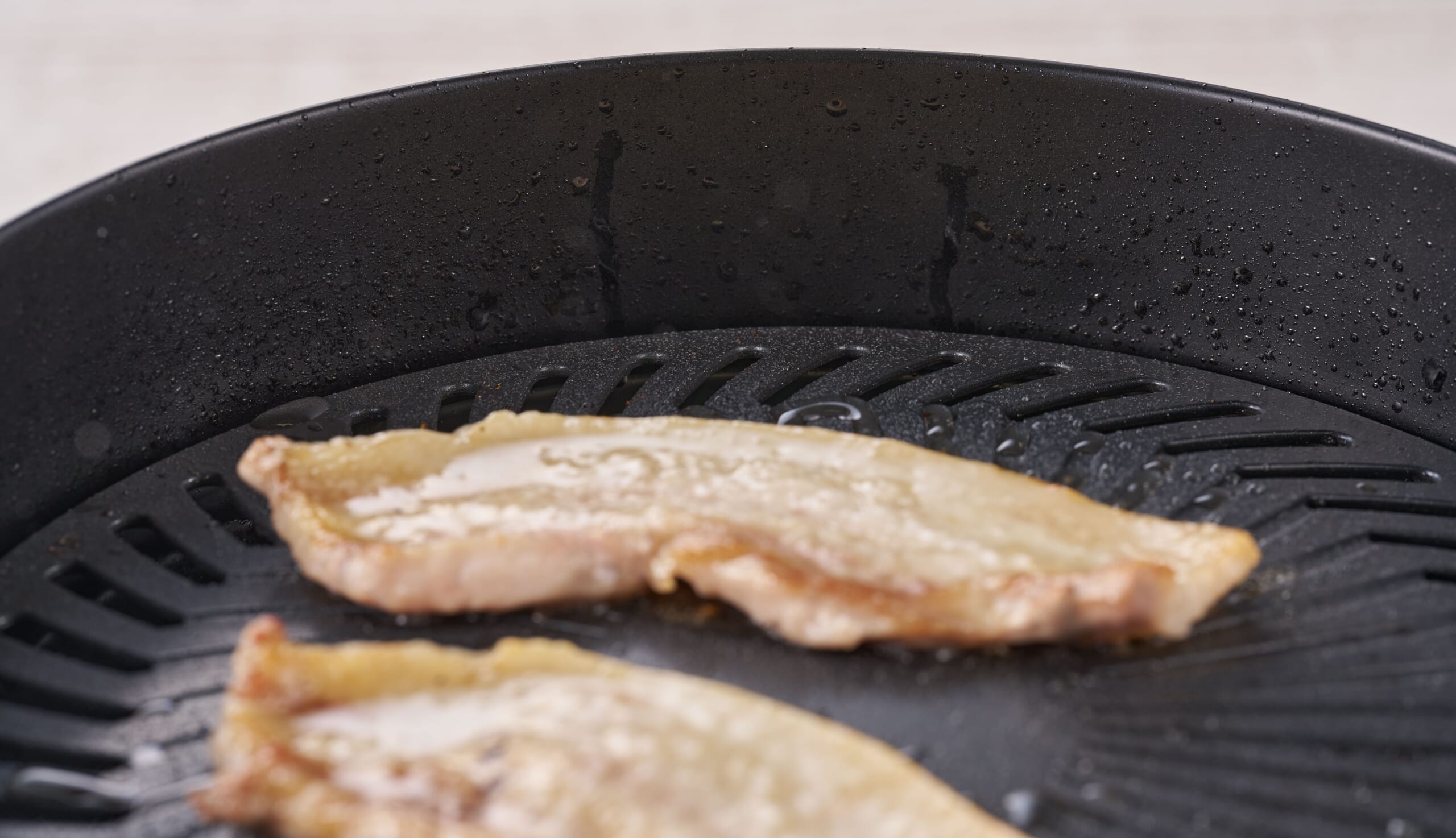 煙を抑える独自構造が魅力の“やきまるスリム”は、プレート温度を約 210~250℃にコントロールすることで脂の煙化を防ぎ、油を炎に落とさず水皿に誘導する設計により、煙の発生を大幅に軽減します。