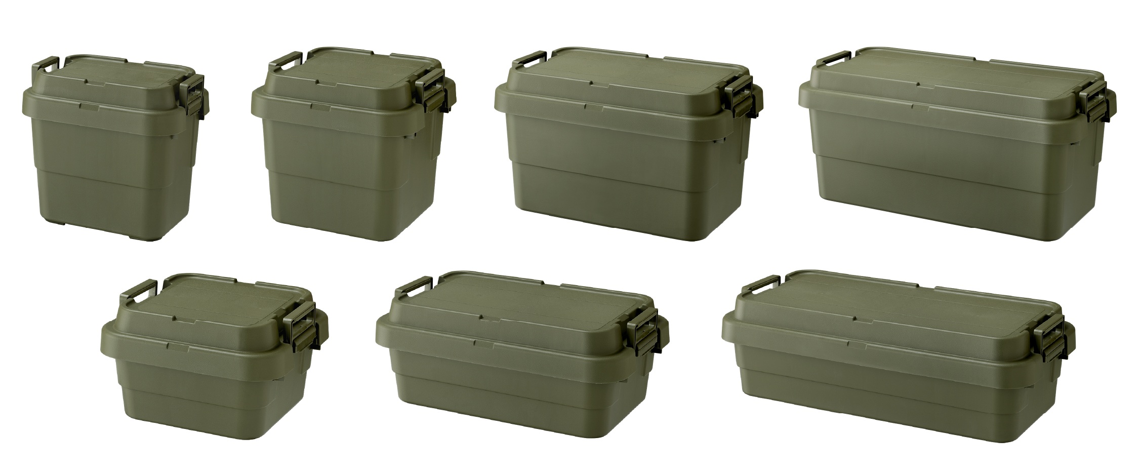 このイージーグリップのラインナップは20、30、50、70の4種にLOWタイプの30、50、70を加えた計7サイズを用意する。安くて頑丈、無骨なルックスでキャンプサイトにも映えるトランクカーゴに“持ちやすい(握りやすい)”という付加価値をつけたことでより利便性が増している。