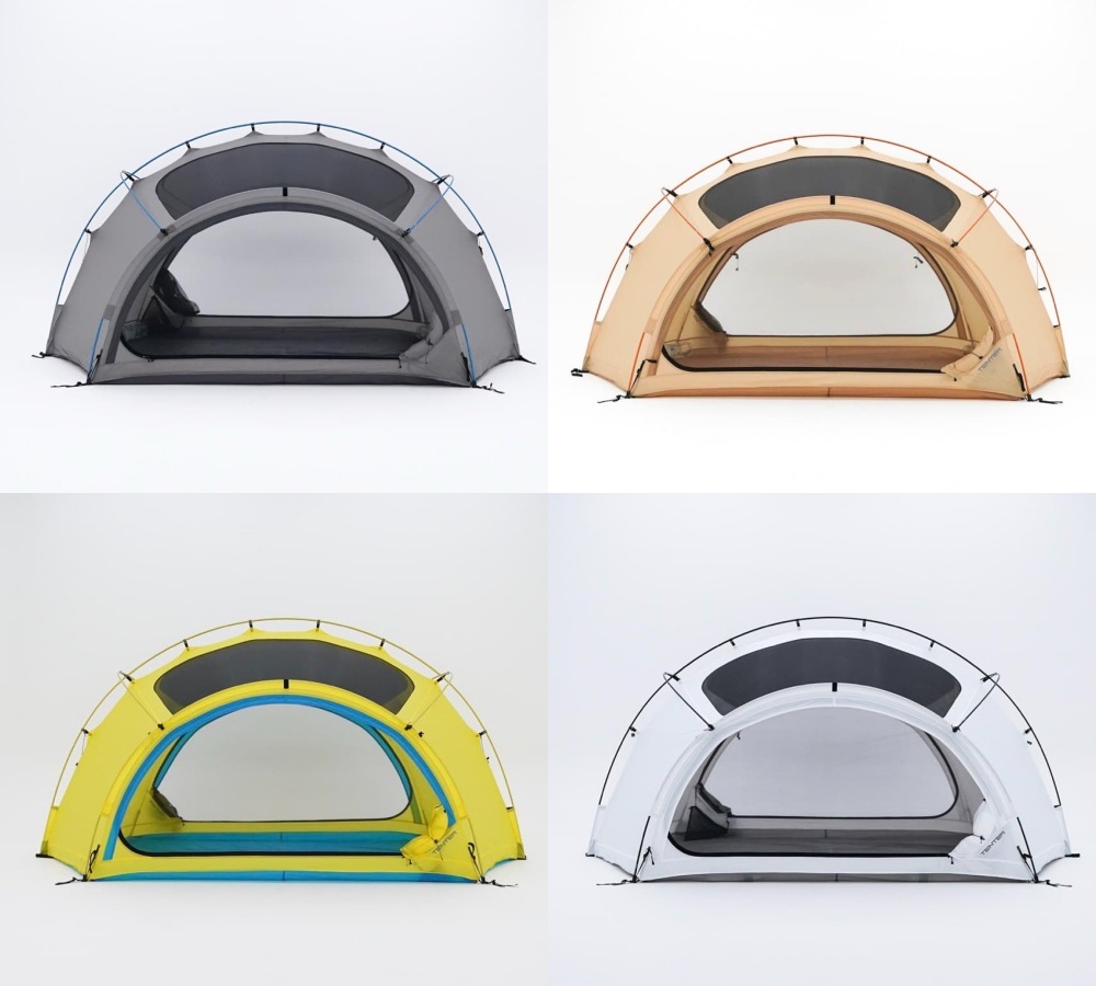 テントにしては珍しくカラバリが豊富なのも嬉しいポイント。スペックとスタイルがマッチしなくても、ジャケ買いしてしまいそうだ。ベーシックなチャコールやホワイトから、アースカラーのベージュ、キャンプ場で目を引くであろうイエローなど多彩なラインナップに。