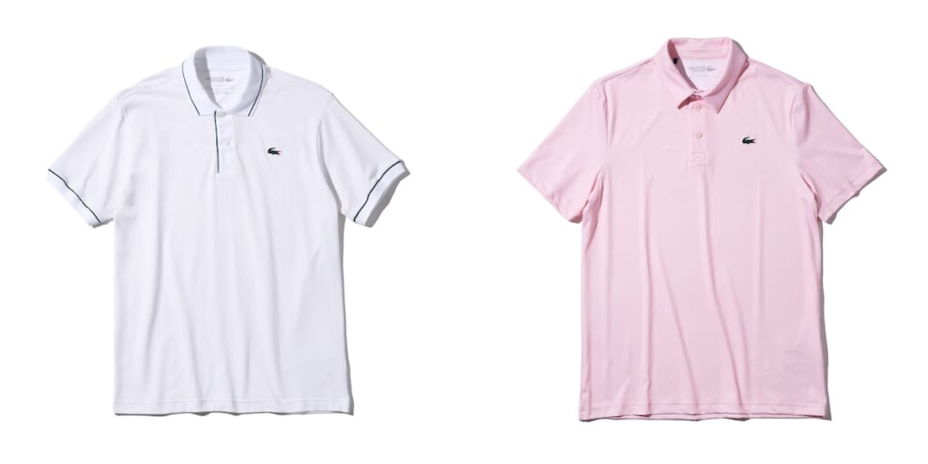 LACOSTEのゴルフラインでも、ゴルフを楽しむための機能を搭載した多彩なポロシャツがラインナップ。このほかにも、ブランドらしいエスプリな雰囲気は踏襲しつつ、デザインや柄など、遊び心に溢れたアイテムが揃う。