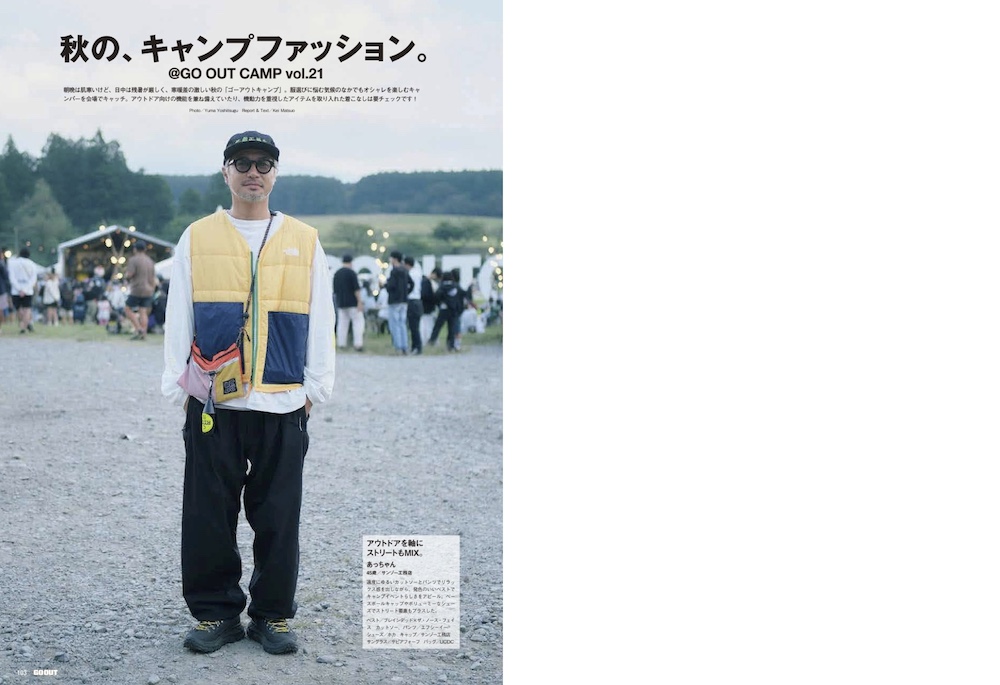 ほかにも、9月末に開催された「GO OUT CAMP vol.21」の会場でスナップした、秋のキャンプファッション、THE CAMP STYLE、キャンパーたちの愛車拝見と、今月も内容たっぷりでお届けいたします!