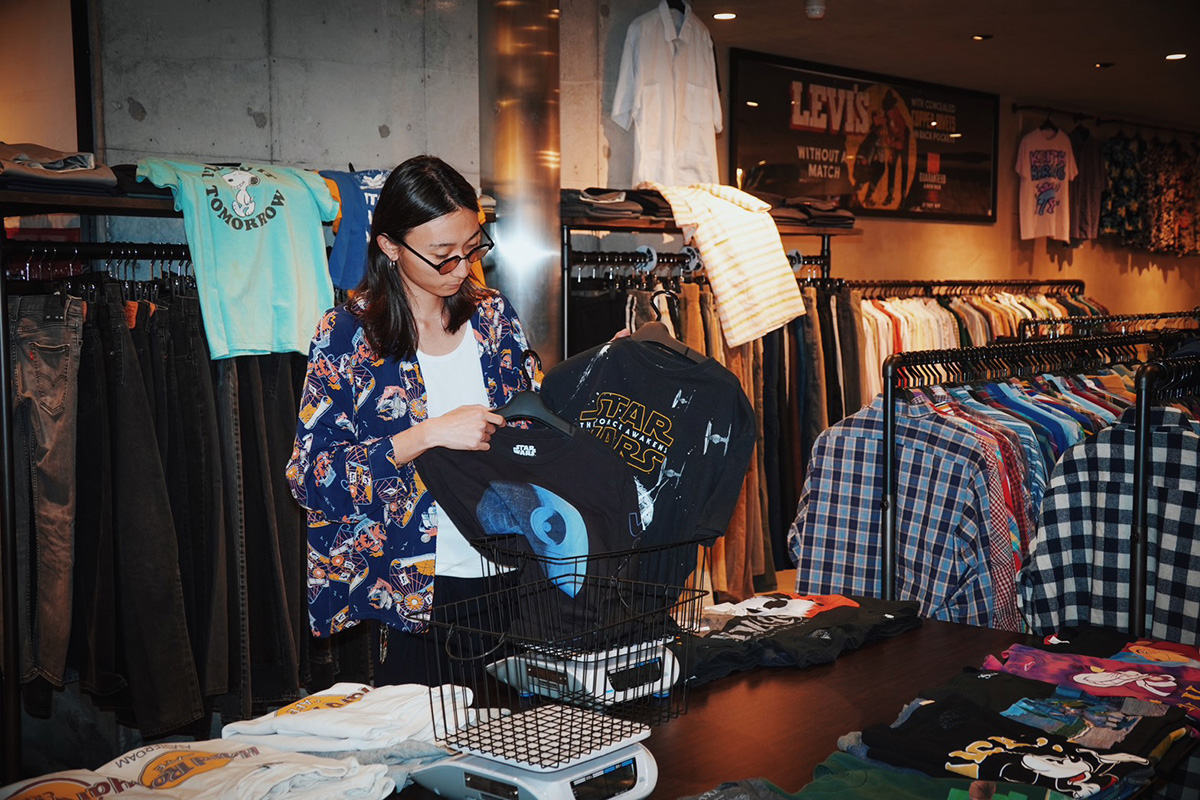 こちらは『detail』の姉妹店、『APPLICATION』にて開催され、アメリカで直接買い付けた古着を 1gあたり7.7円(税込)で販売する。