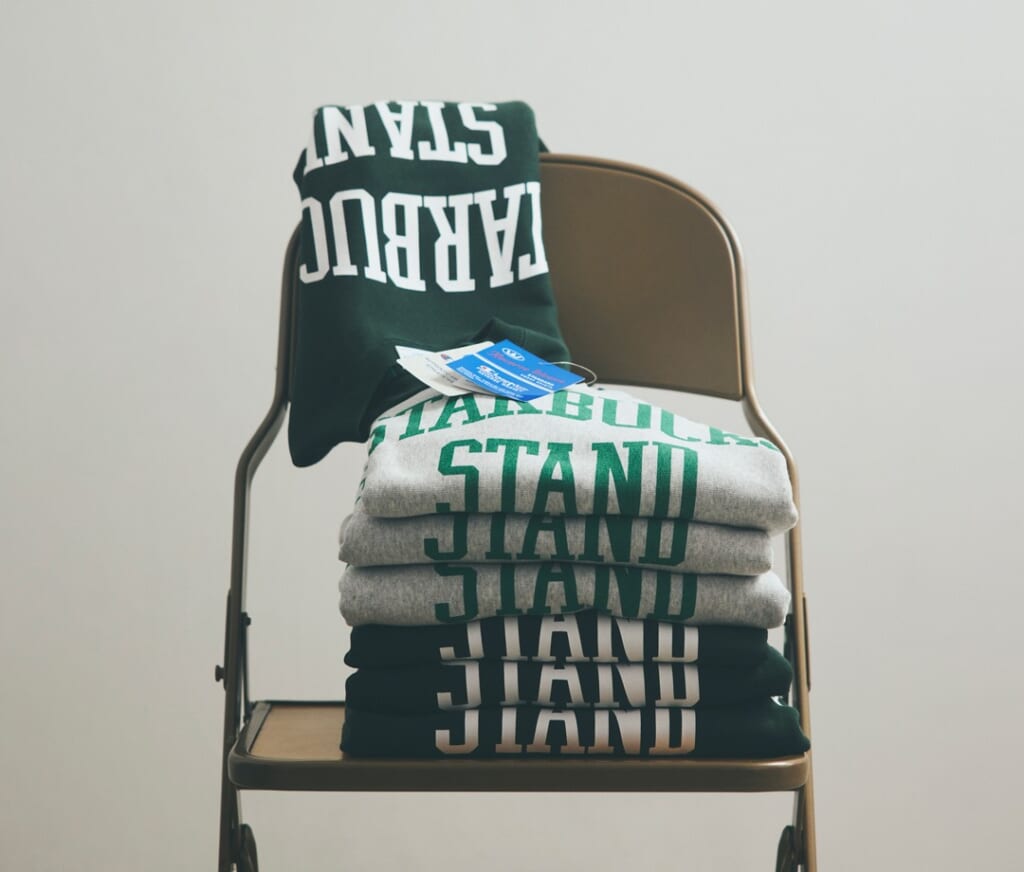 2025年11月から開始したEXTRA Collectionでは、「Champion(チャンピオン)」別注のスウェットをラインナップ。胸元に『STARBUCKS STAND』の文字がカレッジ風フォントでデザインされたこだわりのアイテムだ。