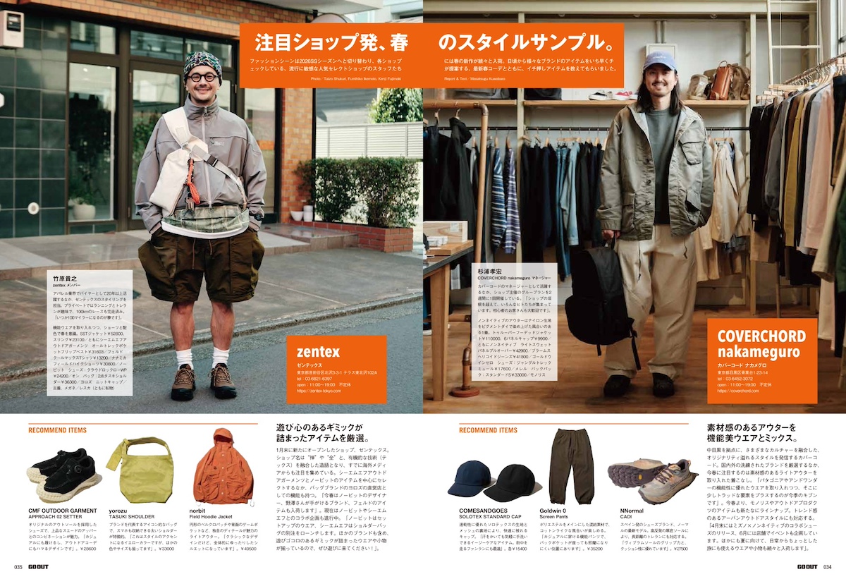 3/30(月)に発売となるGO OUT vol.199 5月号『注目SHOP発、春のスタイルサンプル。』では、アウトドアファッションシーン最前線の人気セレクトショップが提案する春の着こなしとともに、厳選おすすめアイテムをご紹介!