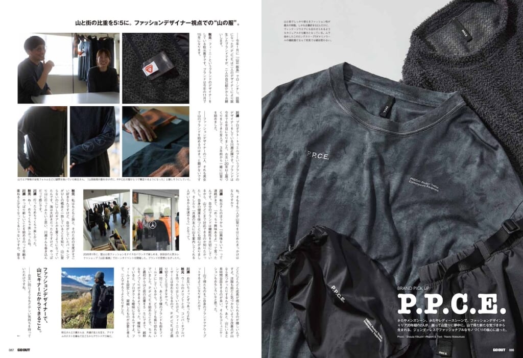 今月のブランドピックアップは、かたやメンズシーン、かたやレディースシーンで、ファッションデザインキャリア20年超の2人が手がける「P.P.C.E.(ピーピーシーイー)」。山で得た新たな気づきから生まれる、ジェンダーレスでファッショナブルなモノづくりの核心に迫った。