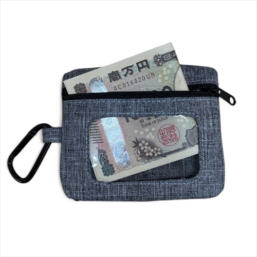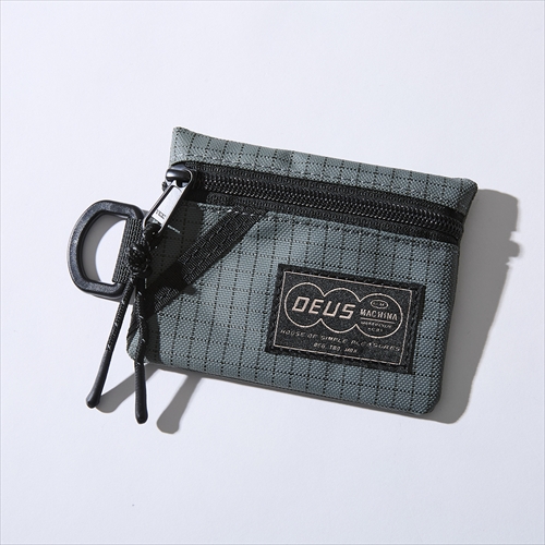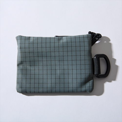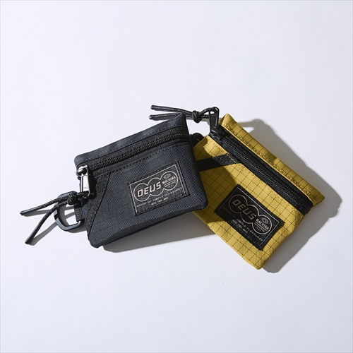 引き裂き強度に優れるポリエステルボディを用いたコインケース。レトロな印象のロゴラベルがアクセントで、カラビナなどに引っ掛けられるDリングをサイドにレイアウト。