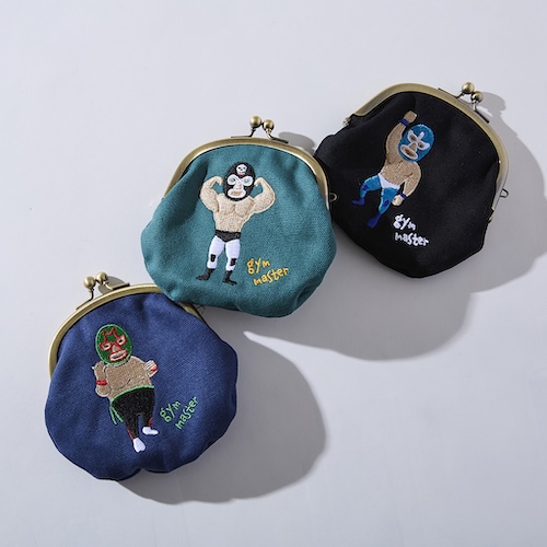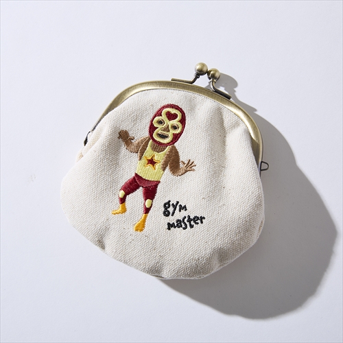 ガバッと開くがま口タイプのウォレットに、覆面レスラーをモチーフとした脱力感のあるアイコンを刺繍。ボディは使うほどに柔らかくなるコットンのキャンバス地を使用。