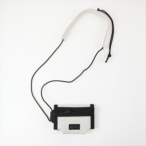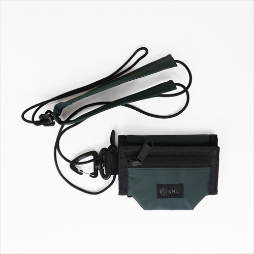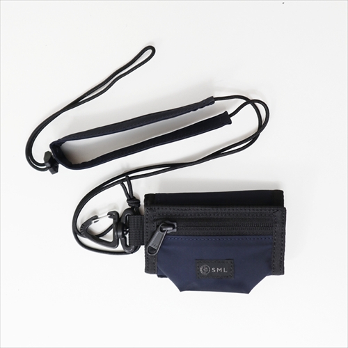 コインケース・お札入れ・キーリング・カードケースの機能を、三つ折りタイプのウォレットに集約。肩や首に引っ掛けて持ち運べる、長さが調整できるストラップ付き。