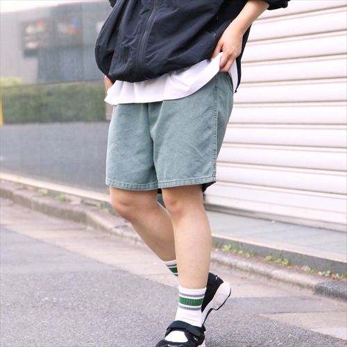 やや厚手のコットンにピグメント染めを施し、穿き込んだようなフェード感を演出。ヴィンテージライクな質感を引き出すため、ディテールを削ぎ落としたミニマルな佇まい。