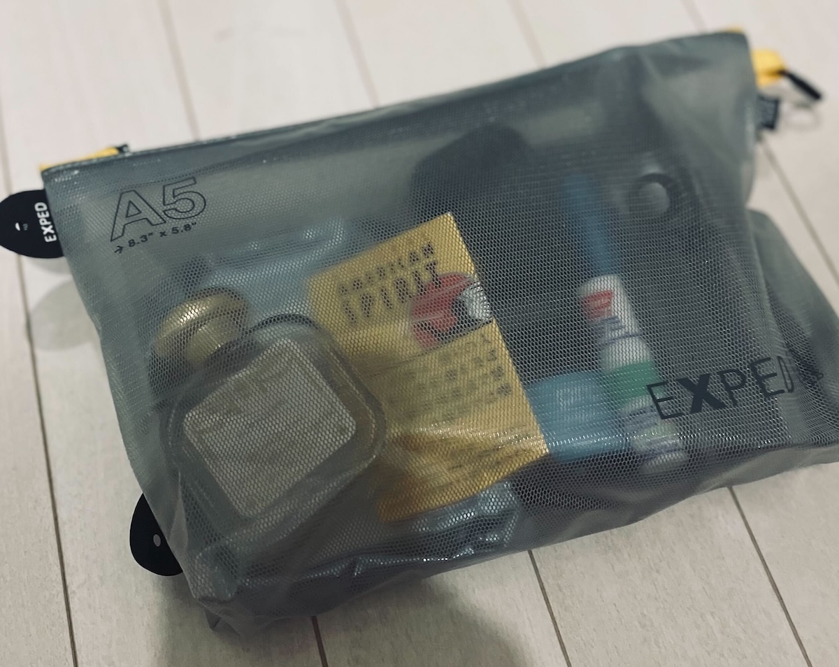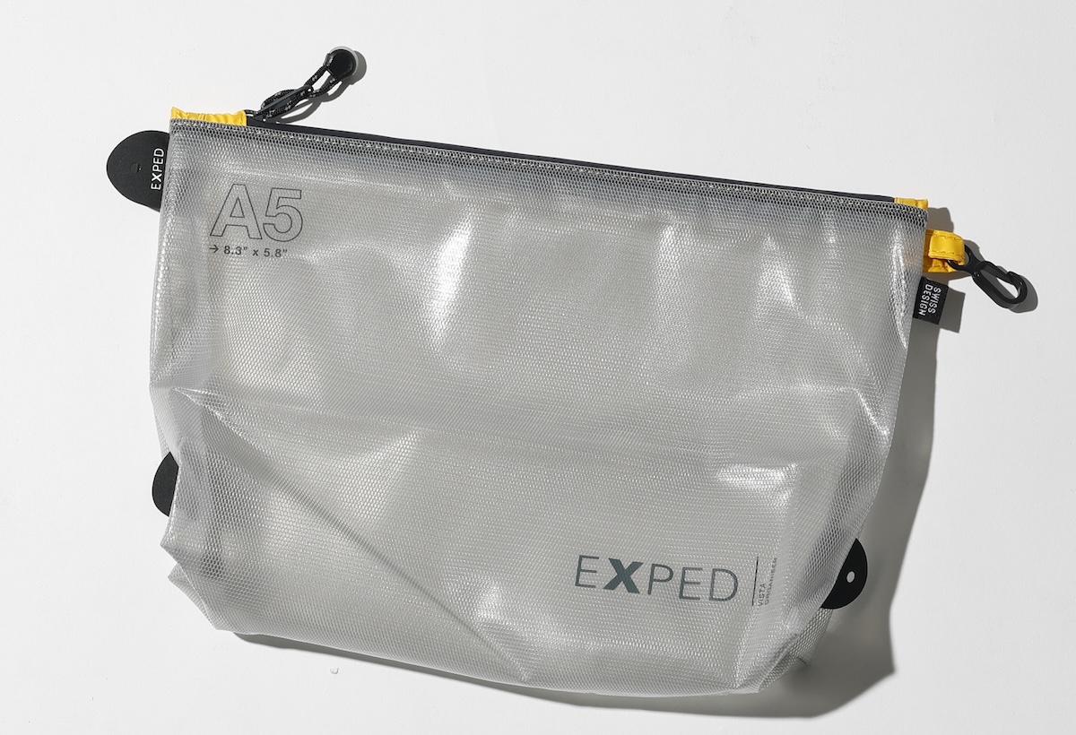 アウトドアブランド、エクスペドのオーガナイザーは、しなやかながら耐久性に優れた生地を採用した万能ポーチ。さまざまな大きさが出揃うなか、A5サイズをチョイス。