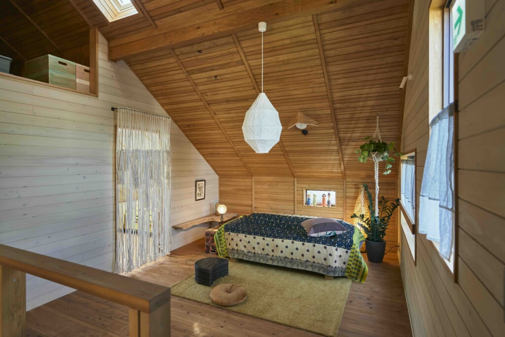 階段をあがった先にある「上の間」。家全体としては開放的な「貫け」がある一方、家族それぞれの時間や空間を大切にする「間」も適度の確保している。