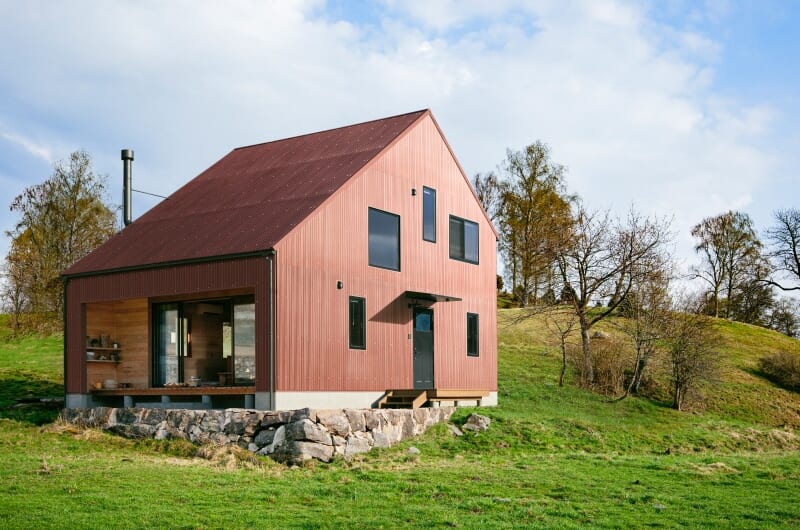 既存の「角スレート」と「うろこスレート」に加え、新たに登場した外装の「なみ鋼板」は、素材に頑丈な鋼板を採用。それでも、すっきりとした潔い波型のドレープにより、不思議と全体はやわらかい印象に。タフさも兼ね備えた外装ながら、自然の景観にも違和感なく溶け込んでくれる。