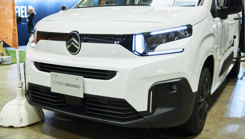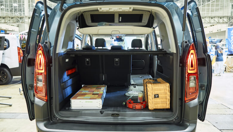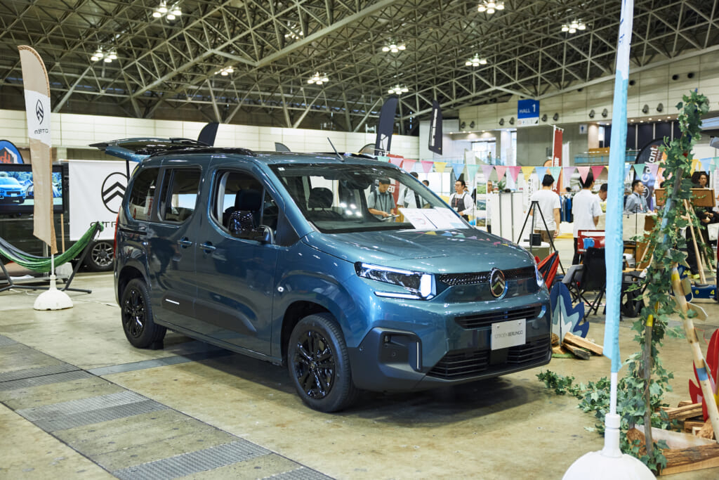 まずはシトロエンの大ヒットMPV「ベルランゴ(BERLINGO)」をチェック。キャンプシーンをイメージさせる演出で2台が展示されていた。