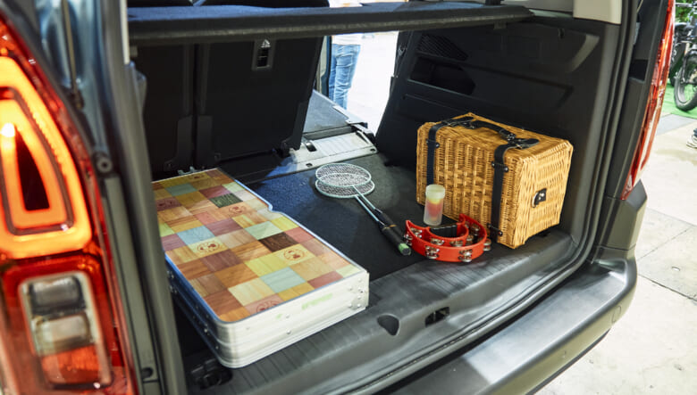 さらに荷室上部には約60L容量の「シーリングボックス」を備えている。後部座席からもアクセスできるのでキャンプギアのほかに子供のオモチャ入れなどにもピッタリ!