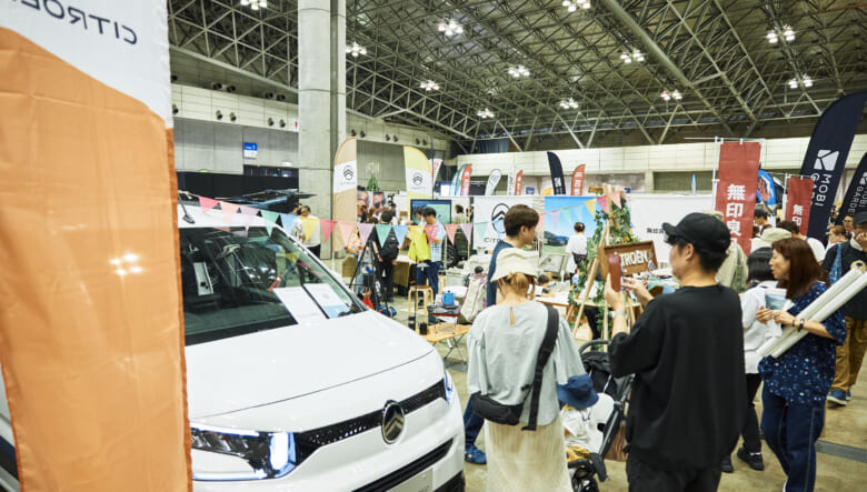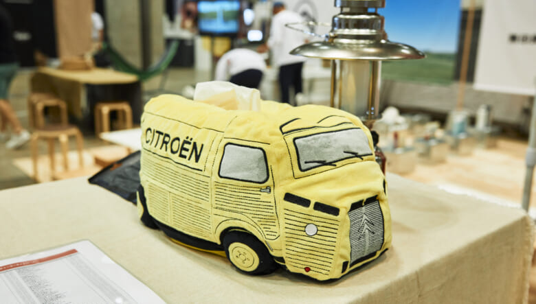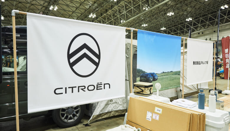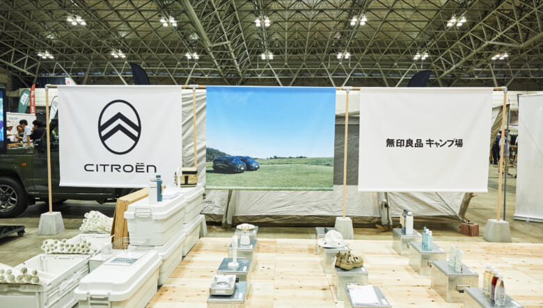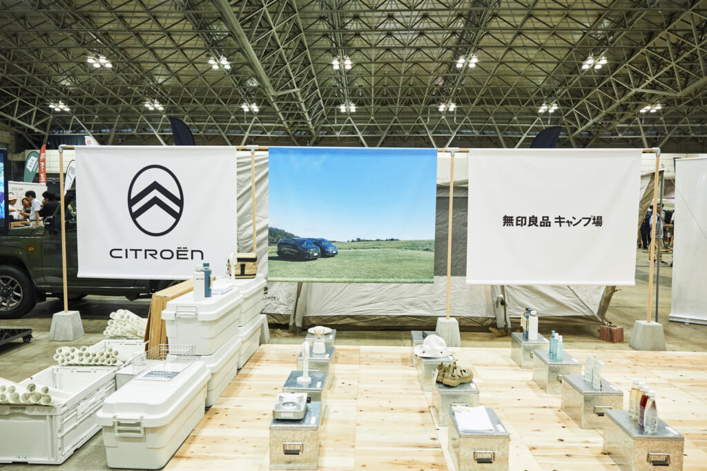 その中で気になるブースを発見! フランスのクルマメーカー「Citroën(シトロエン)」ブース内に「無印良品(MUJI)」のワークショップが!? 両社の繋がりはシトロエンが定期的に行っているキャンプイベント“Citroënist Camps”の舞台が無印良品のキャンプ場というのがキッカケだ。