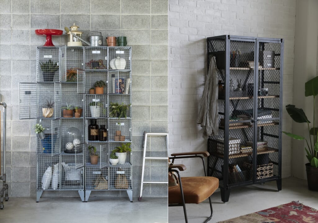 いずれも無骨で男前なメッシュキャビネットだから、キャンプギアや工具などの収納にぴったり。インテリアの主役になりつつ実用性も兼ね備えたラックを狙っていた人は要チェックだ!