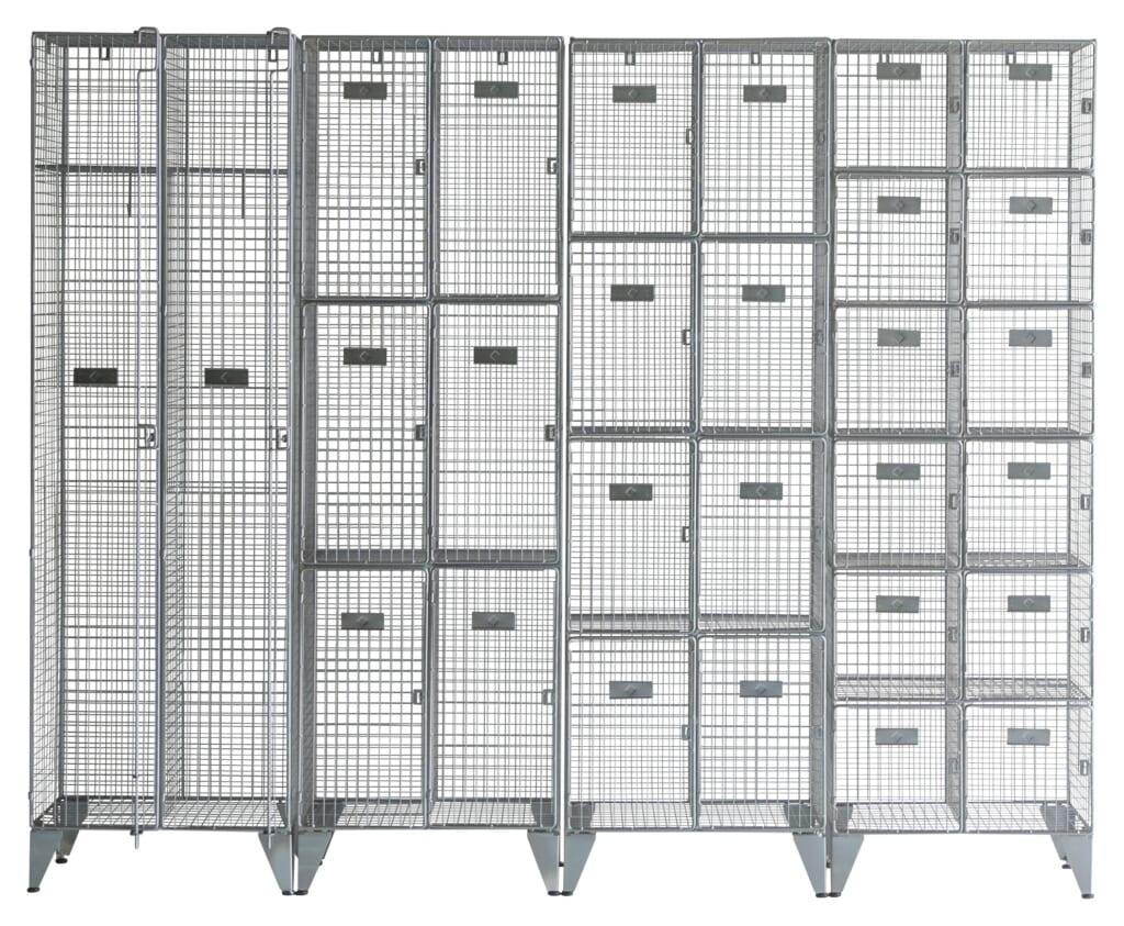 イギリスのスクールロッカーをモチーフにしたスチール製キャビネット。見た目のインパクトもあるので部屋のアクセントにも! 全面メッシュは圧迫感も少なく、これを生かして植物や雑貨を飾ったり、フックをかけて物を吊るすなど使い方も自由自在。